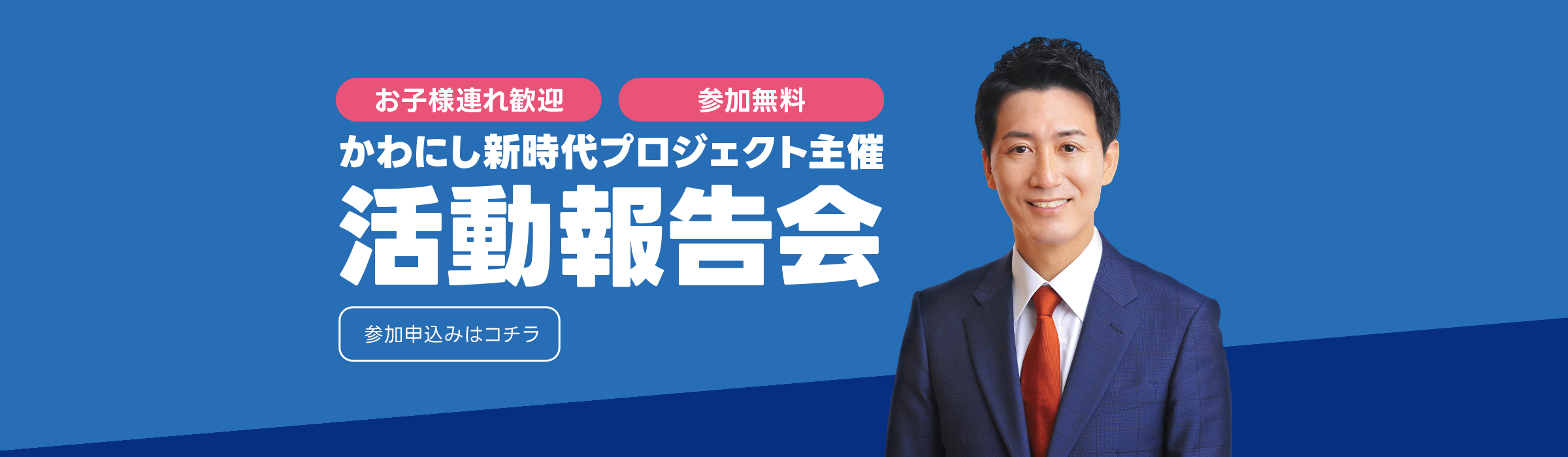 「さあ、かわにし新時代 第2章へ」 引き続きのご支援を賜りますようお願い申し上げます。